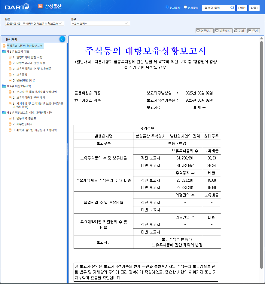 ◦ 이재용 회장 및 특별관계자들의 삼성물산 주식 보유량의 미미한 증가는 주가에 큰 영향이 없을 수 있다고 분석했습니다.